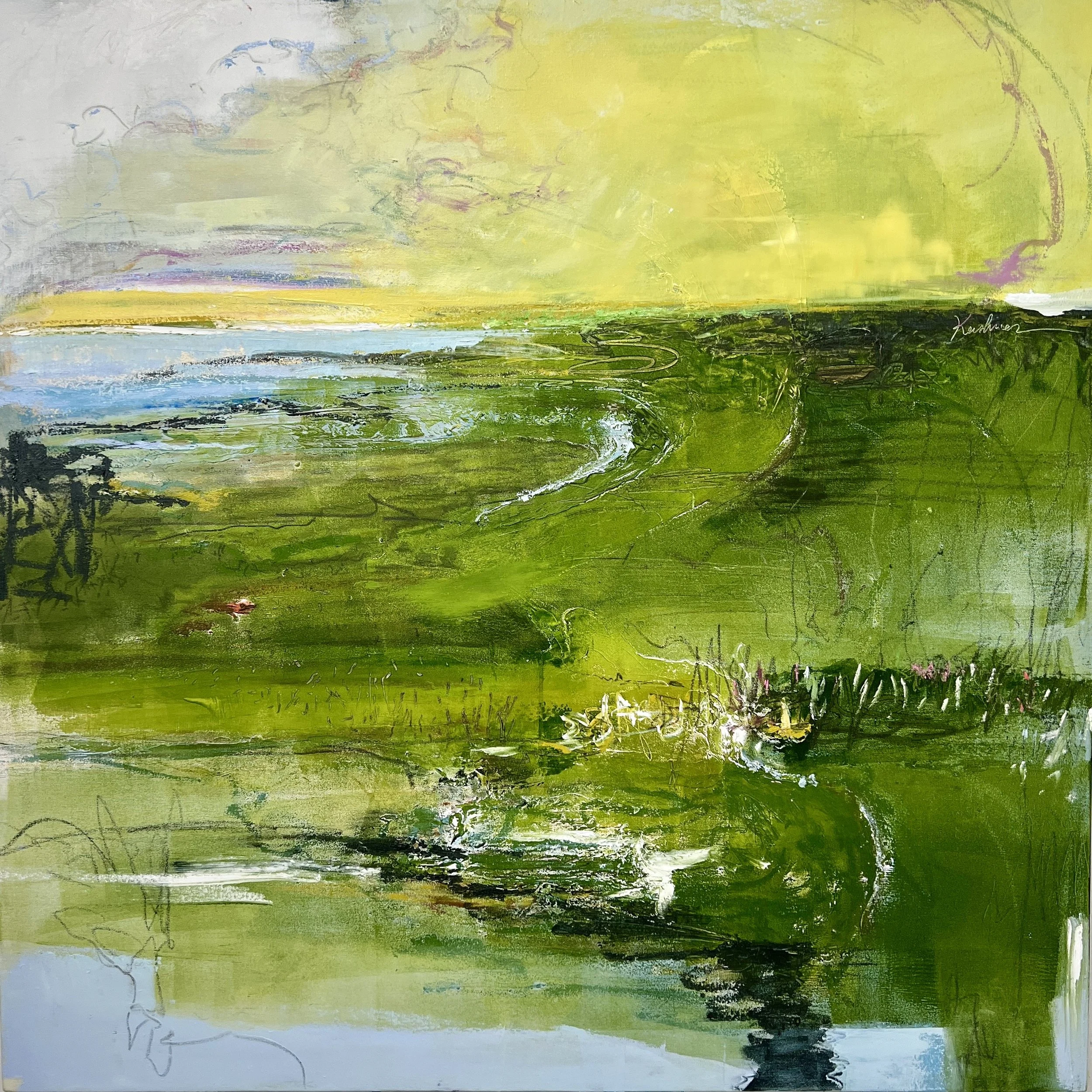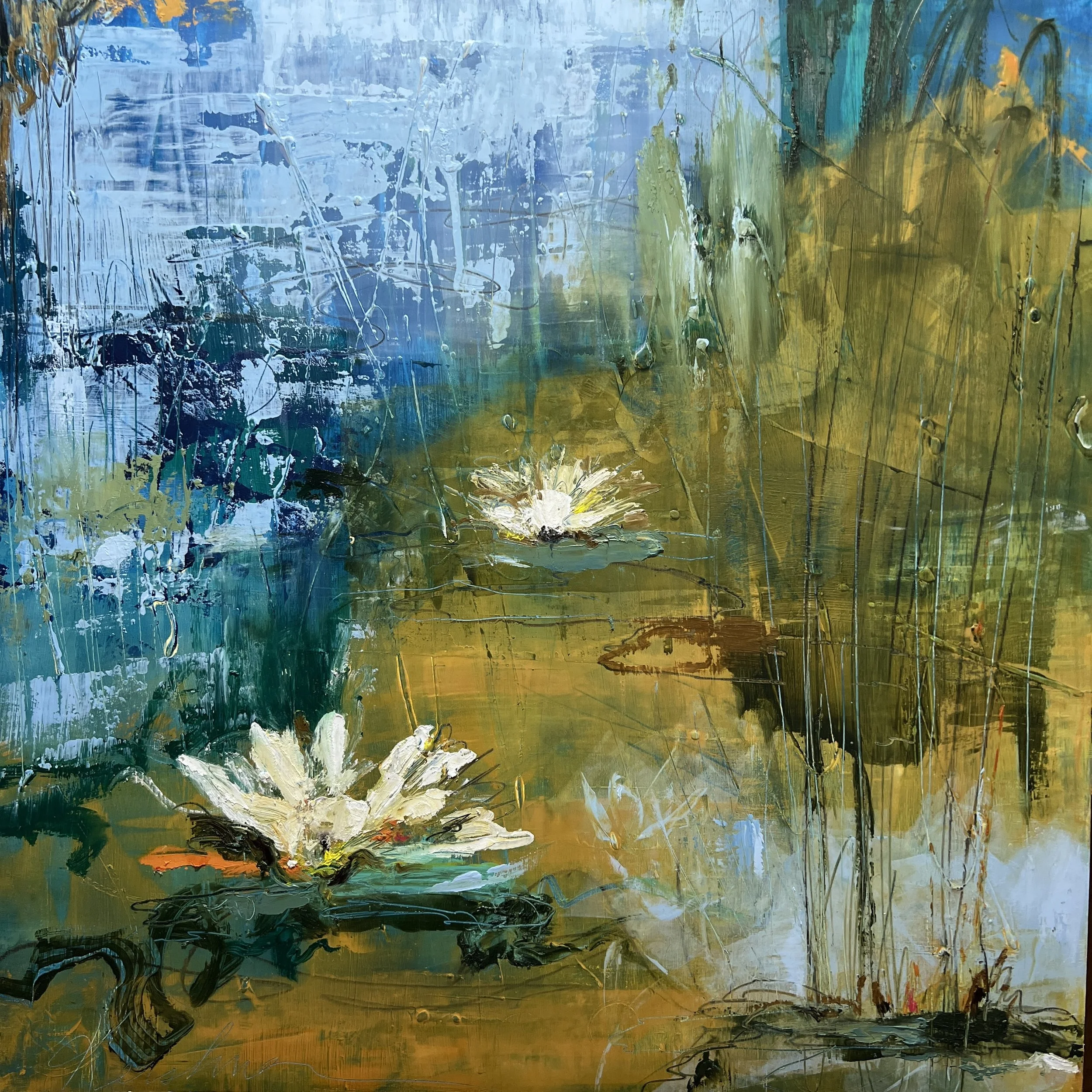 In 2007, Leigh returned to art in earnest, studying under Chris diDomizio and training in the fundamentals of the French Academy method of drawing. For over a decade, she deepened her practice — continuing her studies with Lisa Pressman, Andrea Wedell, and Nicholas Wilton. She began working with cold wax, layering it into her paintings to create surfaces that are richly textured, dimensional, and almost alive with energy.